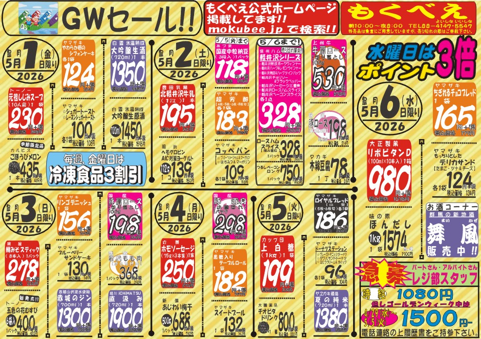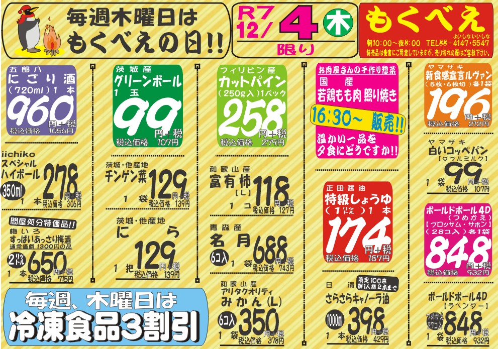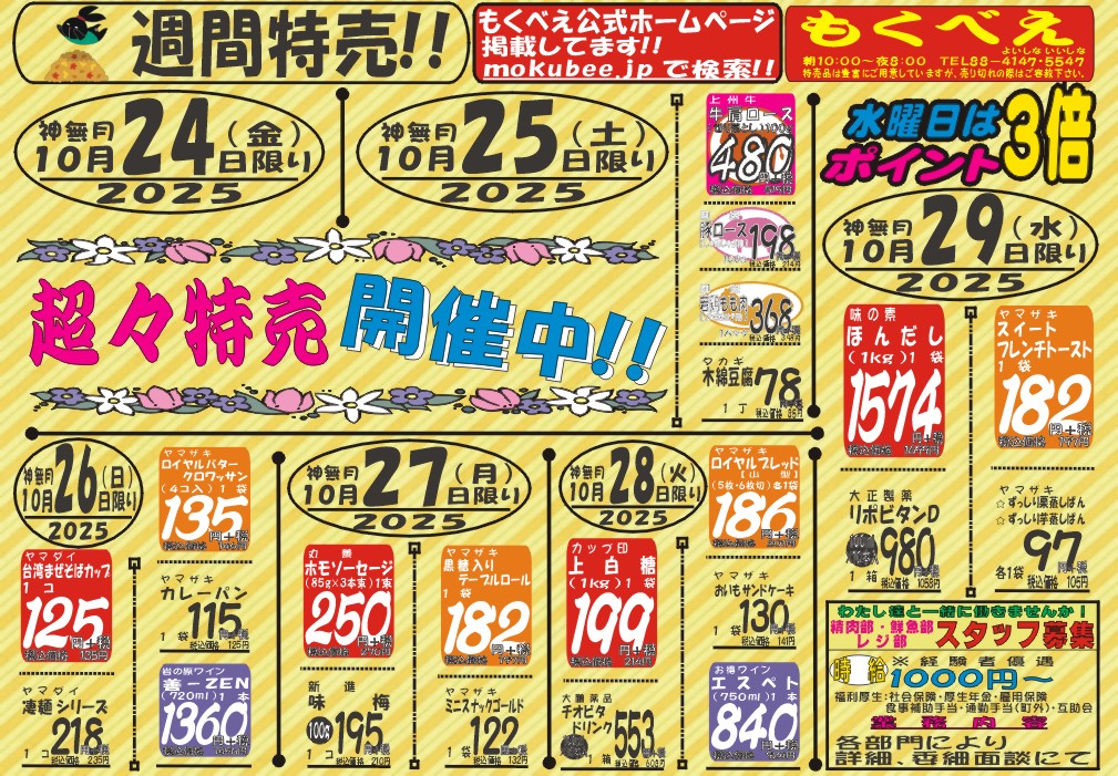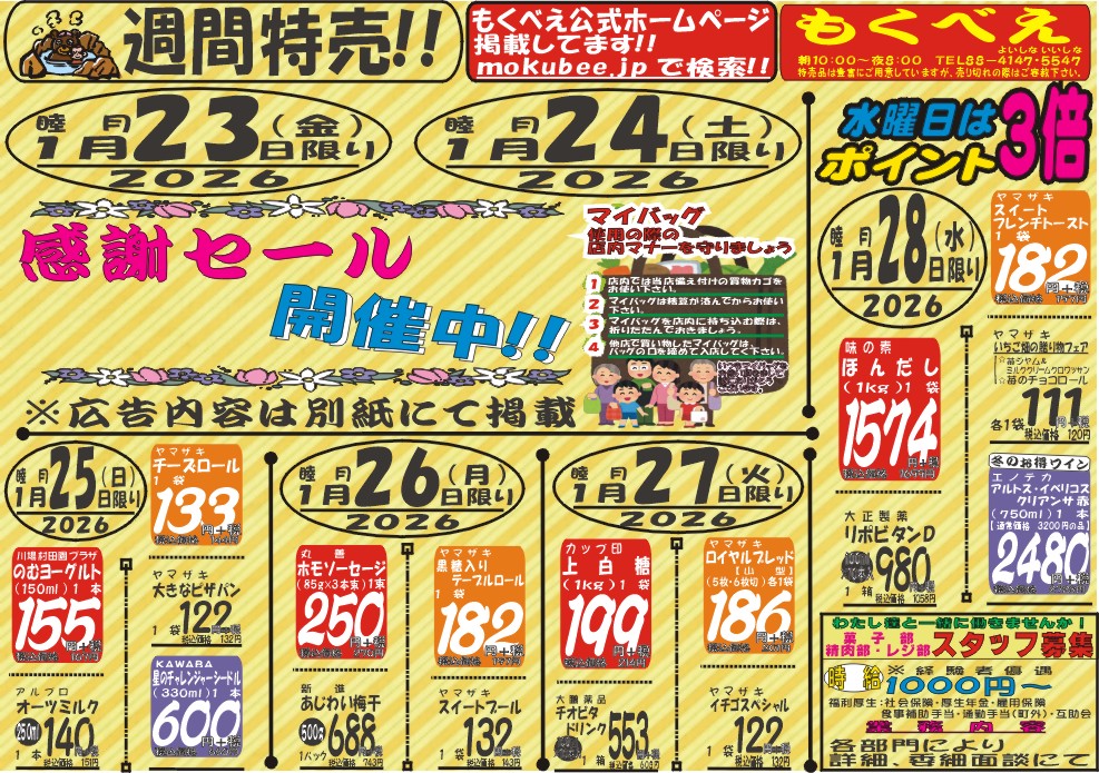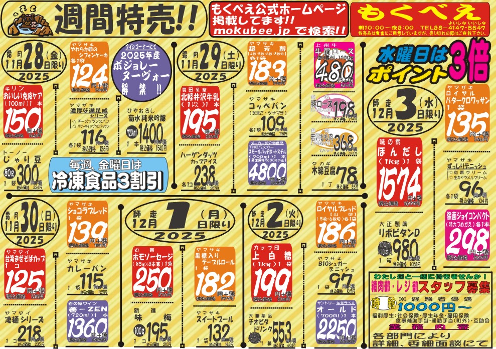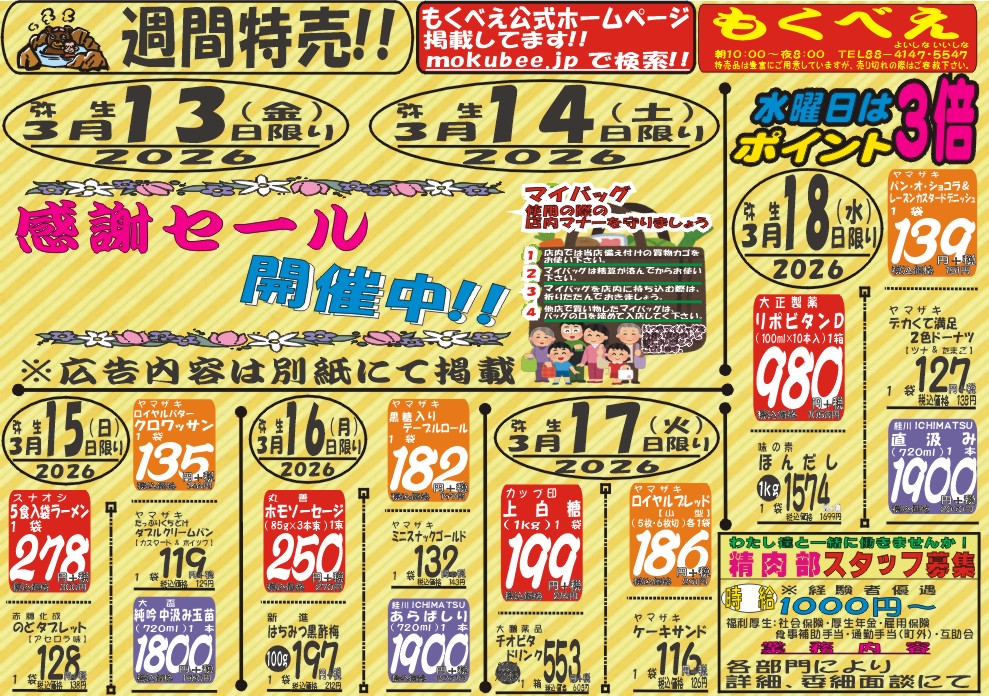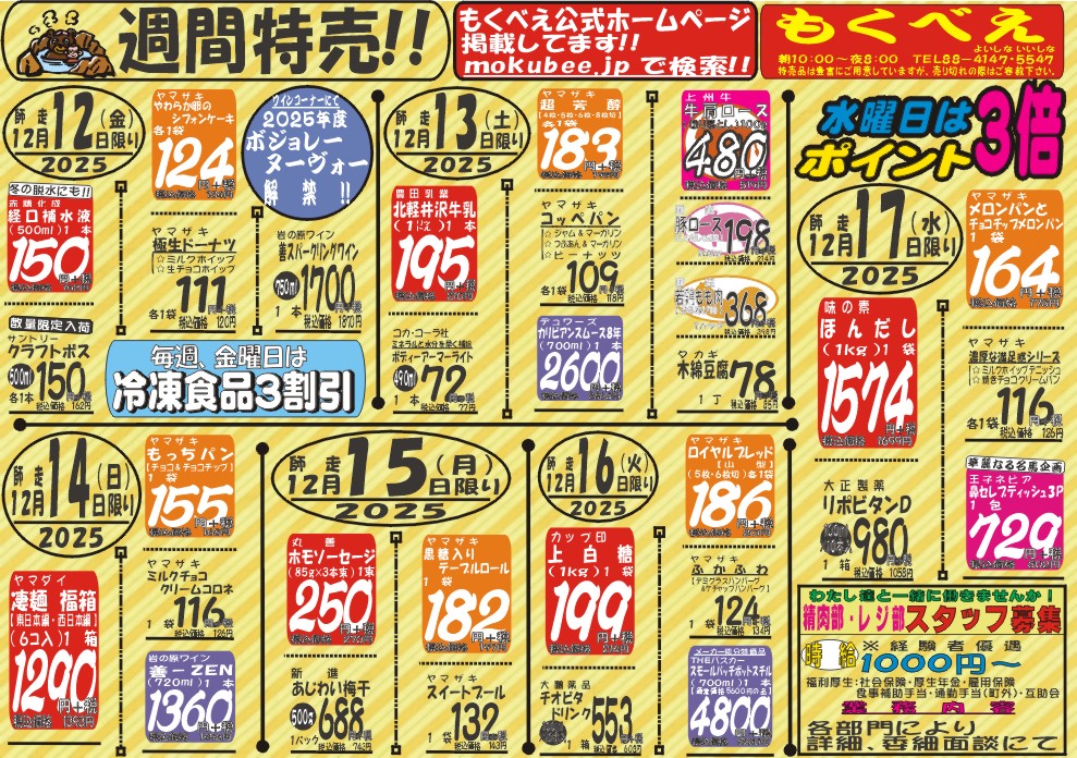 Super Mokubee is a community-based fresh food supermarket located in Kusatsu Onsen. Fresh ingredients are bargain every day. We also have various sundry goods.